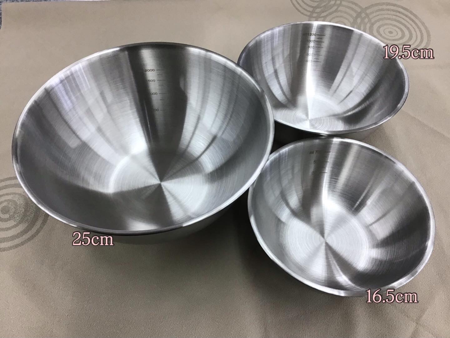 深型で料理に便利な目盛り付き『ステンレス製ボウル3サイズセット』